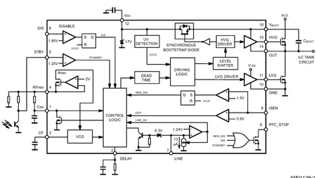 L6599A是以前L6599的改进改型。它是一种针对串联谐振半桥拓扑的双端控制器。它提供50%的互补占空比:高侧开关和低侧开关被驱动ON/OFF 180°反相,正好在同一时间。输出电压调节是通过调节工作频率来实现的。在一个开关的关断和另一个开关的开启之间插入固定的死时间,保证了软开关并使高频操作成为可能。为了使用引导rap方法驱动高端开关,集成电路采用了一个高压浮动结构,能够使用一个同步驱动的高压DMOS来取代外部fa -recovery引导rap二极管,并具有超过600伏的电压。