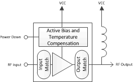 TRF37A75 的设计目的是易于使用。 为了实现最大灵活性,这个产品系列使用常见的 5V 电源,并且流耗为 80mA。 此外,这一系列在设计时使用了有源偏置电路,此电路在过程、温度和电压变化范围内提供一个稳定且可预计的偏置电流。 为了实现增益和线性预算,此器件被设计成提供一个平坦增益响应,以及频率达到 6000MHz 时的出色 OIP3 输出。 针对空间受限应用,这一系列与 50欧姆 内部匹配,这样简化了使用,并且最大限度地减小了所需的印刷电路板 (PCB) 面积。