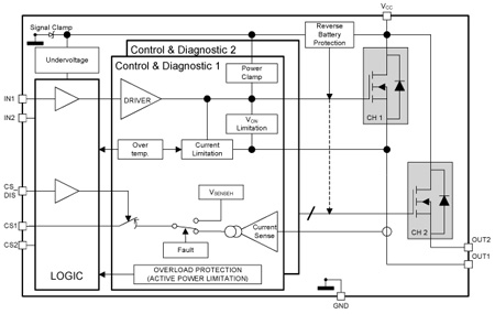 支持模拟电流感应的双通道高侧驱动器,用于汽车应用