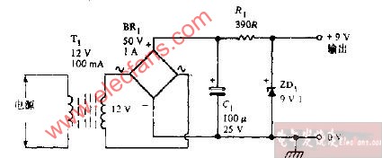 摘要: [导读] 交流电源供电的9V直流电源电路图