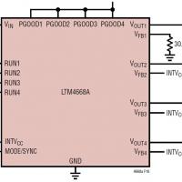 故障保护功能包括过压、过流、过温保护。该电源模块采用6.25mm×6.25mm×2.1mm BGA封装,节省空间,热增强。LTM4668A具有SnPb (BGA)或符合RoHS标准的终端。