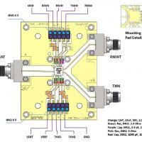 QPM1002EVB1评估板有一个0.008“厚的RF层,0.5盎司铜金属层。连接器接口处的微带线为西南微波端发射连接器1092-01A-5进行了优化。