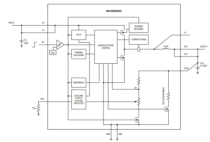Maxim MAXM38643纳米电源Buck模块具有超低的静态供电电流,旨在延长始终在线设备的电池寿命。该模块的最高效率为96%。MAXM38643模块具有从0.5V到5V的出厂预编程V(OUT),从0.7V到3.3V的单电阻可调V(OUT),±1.75%的输出电压精度,以及高达600mA的负载电流能力。该模块保护系统在多个使用情况下,通过反向电流阻塞关机和主动放电功能。典型的应用包括空间受限的便携式产品、可穿戴设备、可听设备、单锂电池和硬币电池产品,以及蓝牙 LE设备。