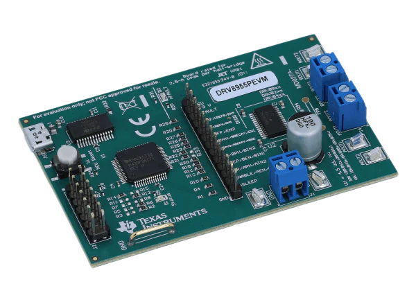 德州仪器DRV8955PEVM驱动程序评估模块(EVM)允许轻松评估DRV8955P设备。DRV8955P集成了两个n通道功率MOSFET h桥和集成的电流检测和调节电路。DRV8955P单路供电,支持从4.5V到48V的宽输入电源范围。德州仪器DRV8955PEVM使用MSP430 微控制器和USB接口芯片来管理通信从图形用户界面(GUI)软件应用程序安装在PC上的 Windows 。图形用户界面向MSP430发送串行命令,实现对设备信号的控制、故障监测、SPI寄存器的读写、电机的驱动等功能。