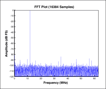 图6. MAX19541 ADC采样后的信号频谱,f(SAMPLING) = 125MHz、f(IN) = 11.5284MHz