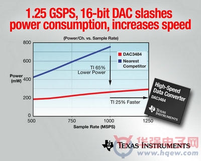 2011 年 3 月 31 日,日前,德州仪器 (TI) 宣布推出业界最低功耗的 4 通道 16 位 DAC (数模转换器)DAC3484。该款产品 在 1.25 GSPS 速率下比速度最接近的 4 通道 DAC 快 25%,而每通道功耗仅为 250 mW, 比性能最接近的同类竞争产品低 65%。此外,DAC3484 还比其它 4 通道 DAC 解决方案小 40%,并支持高达 250 MHz 的宽带功率放大器线性化。具有更高输入总线的 DAC34H84 或双通道 DAC3482 可支持高达 500 MHz 的线性化带宽。如欲了解更多详情,或订购样片,敬请访问:www。ti。com.cn/dac3484-pr。